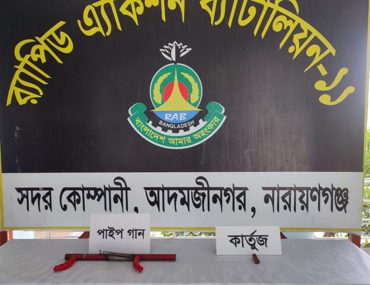 নারায়ণগঞ্জের সোনারগাঁও উপজেলার বারদী ইউনিয়নের পাইকপাড়া এলাকা থেকে পরিত্যক্ত অবস্থায় একটি দেশীয় তৈরি পাইপগান ও কার্তুজ উদ্ধার করেছে র্যাব-১১।