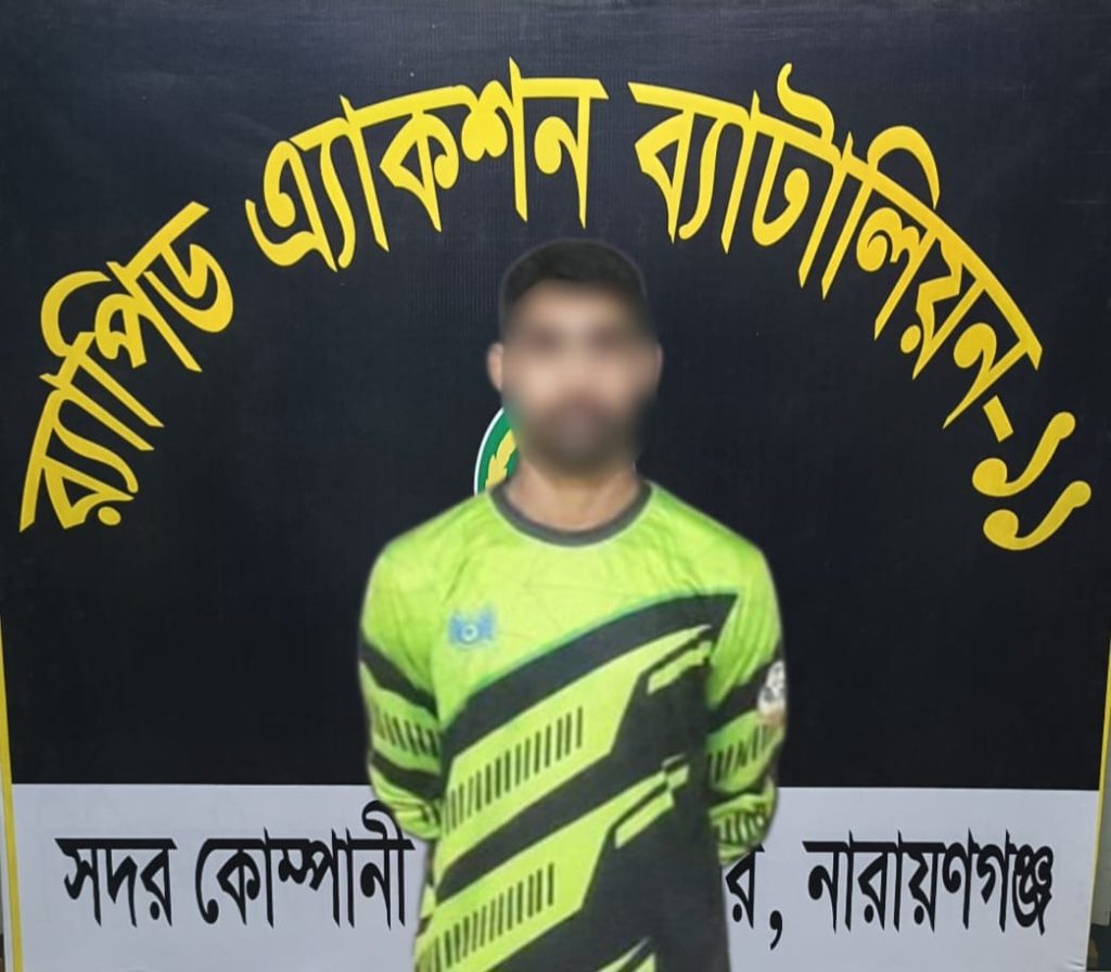 এরই ধারাবাহিকতায়, র্যাব-১১ সদর কোম্পানি, নারায়ণগঞ্জ ও র্যাব-১ উত্তরা-এর একটি যৌথ অভিযানিক দল ১২ নভেম্বর ২০২৫ ইং তারিখ বিকাল ৪ ঘটিকার সময় ঢাকার উত্তরা এলাকা থেকে হত্যাকাণ্ডের অন্যতম আসামি রাহাত (২৮), পিতা—আঃ জব্বার, সাং—মহসিন ক্লাবের গলি, থানা—নারায়ণগঞ্জ সদর মডেল, জেলা—নারায়ণগঞ্জ-কে গ্রেফতার করে।