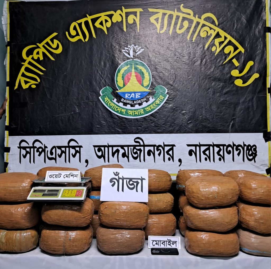 গোপন তথ্যের ভিত্তিতে র্যাব-১১, সিপিএসসি নারায়ণগঞ্জের একটি দল ৩ ডিসেম্বর ২০২৫ রাত ২২:১০ মিনিটে রূপগঞ্জ থানার বড় আলু পাড়াগাঁও এলাকায় অভিযান চালায়। অভিযানে স্থানীয় বাসিন্দা সাজিবুর রহমান (৬১)–কে তার বাড়ি থেকে ৭০.৫ কেজি গাঁজাসহ হাতে-নাতে গ্রেফতার করা হয়। তার বাবা মৃত রহমতউল্লাহ আড়ৎদার এবং মা মৃত জয়বুরনেছা।