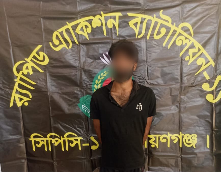 র্যাব-১১, সিপিসি-১, নারায়ণগঞ্জের একটি অভিযানে ২২ ডিসেম্বর ২০২৫ ইং তারিখ দুপুর ১টা ২০ মিনিটে বন্দর থানাধীন মনার বাড়ি এলাকা থেকে তাকে গ্রেফতার করা হয়।