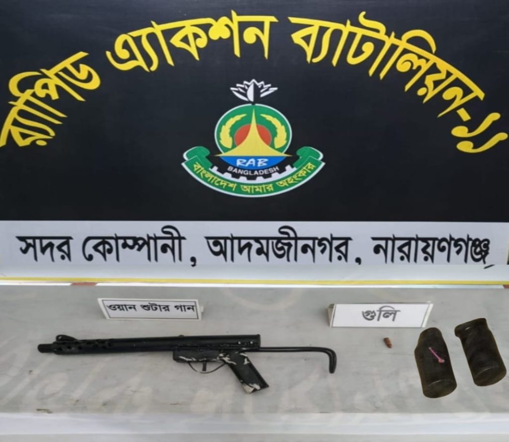 র‍্যাব-১১ এর অভিযানে ফতুল্লা থেকে পাইপ গান, ককটেল ও লুট হওয়া পিস্তলের গুলি উদ্ধার