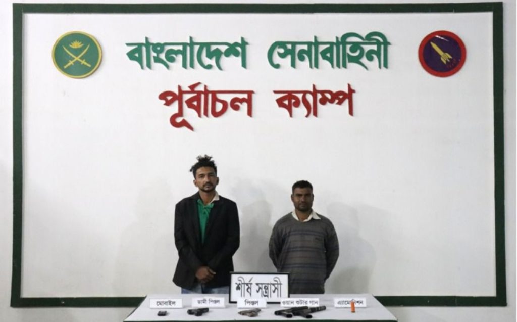 আটককৃতরা হলেন গোলাকান্দাইল ও ভুলতা এলাকার বাসিন্দা হারুন মিয়ার ছেলে কাওসার (২৭) এবং সীতারাম দাশের ছেলে শ্রী রবি দাশ (৩৮)। সেনাবাহিনী জানায়, আটক দুজনই আইনশৃঙ্খলা রক্ষাকারী বাহিনীর তালিকাভুক্ত শীর্ষ অপরাধী।