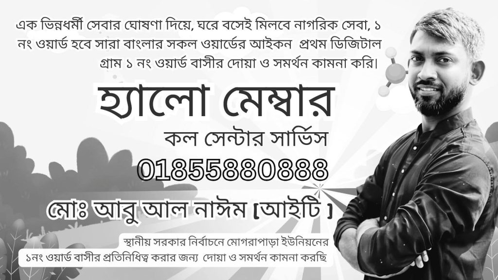 আমি ১ নং ওয়ার্ডে “মেম্বার হেল্পলাইন সার্ভিস” চালু করতে চাই, যাতে প্রতিটি পরিবার একটি নির্দিষ্ট নম্বরে কল করে নাগরিক সেবা সংক্রান্ত সহায়তা পেতে পারে।
