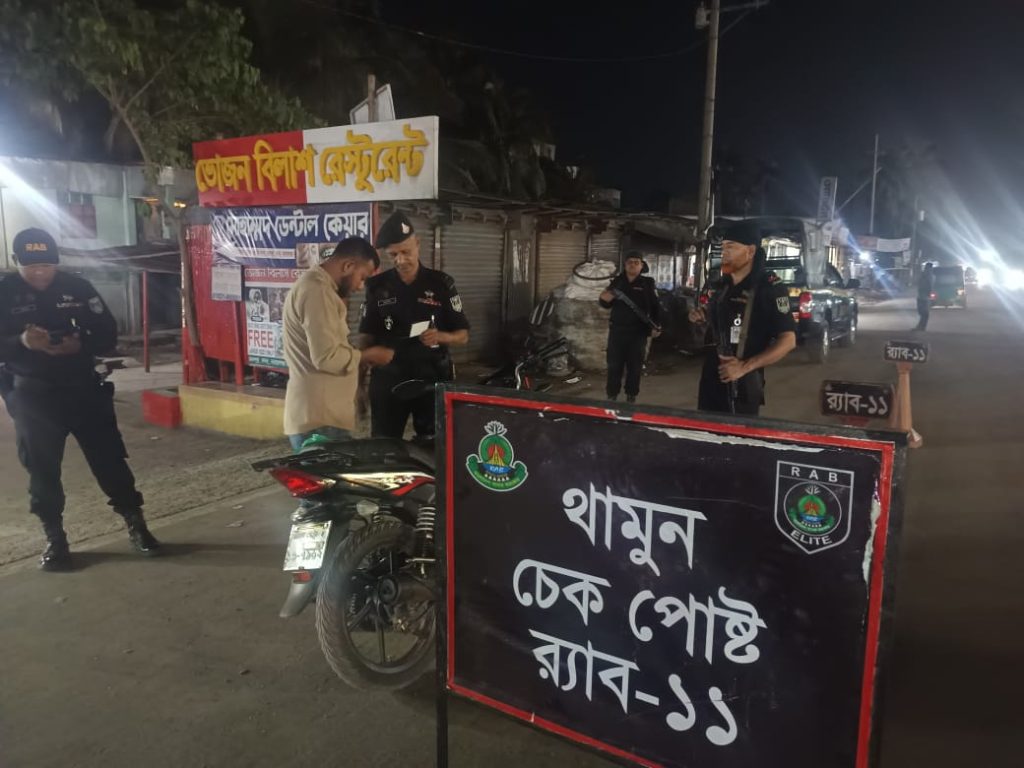 এই প্রেক্ষাপটে, সম্ভাব্য অপরাধ প্রতিরোধ এবং জননিরাপত্তা নিশ্চিত করতে র্যাব-১১ কর্তৃক জেলার বিভিন্ন আবাসিক এলাকা, গুরুত্বপূর্ণ পয়েন্ট ও মহাসড়কে নিয়মিত টহল কার্যক্রম জোরদার করা হয়েছে। পাশাপাশি গুরুত্বপূর্ণ স্থানে চেকপোস্ট স্থাপন করে সন্দেহভাজন ব্যক্তি ও যানবাহনে তল্লাশি কার্যক্রম পরিচালনা করা হচ্ছে।