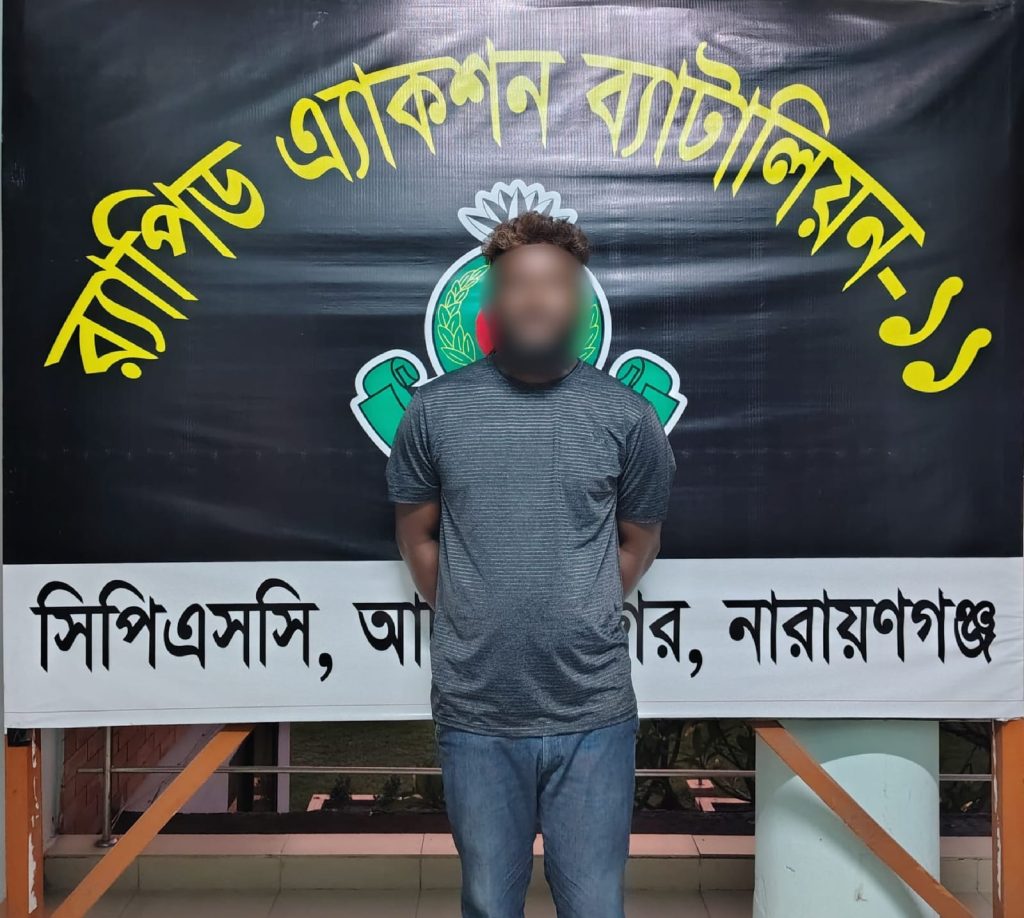 র্যাব সূত্রে জানা যায়, গোপন সংবাদের ভিত্তিতে র্যাব-১১ সিপিএসসি’র একটি চৌকস আভিযানিক দল বৃহস্পতিবার (১০ এপ্রিল) সন্ধ্যা ৭টার দিকে সোনারগাঁ উপজেলার কেওডালা এলাকায় বিশেষ অভিযান পরিচালনা করে তাকে গ্রেফতার করে।